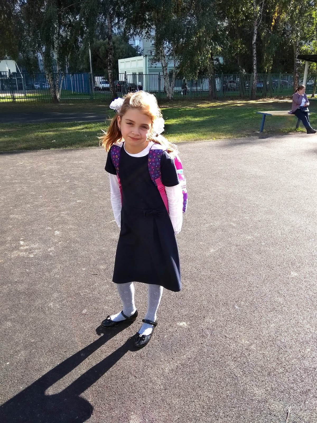 Внучка Лиза утром в школу, в свой любимый первый класс...