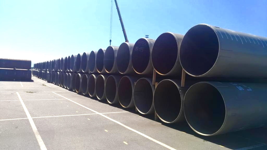 Партии из 3,6 тыс. тонн шпунта Ларсена производства ЕВРАЗ НТМК и 12 тыс. тонн труб производства Колпинского трубного завода доставлены на припортовую складскую площадку генподрядчика строительства СУ ГТ Морстрой.