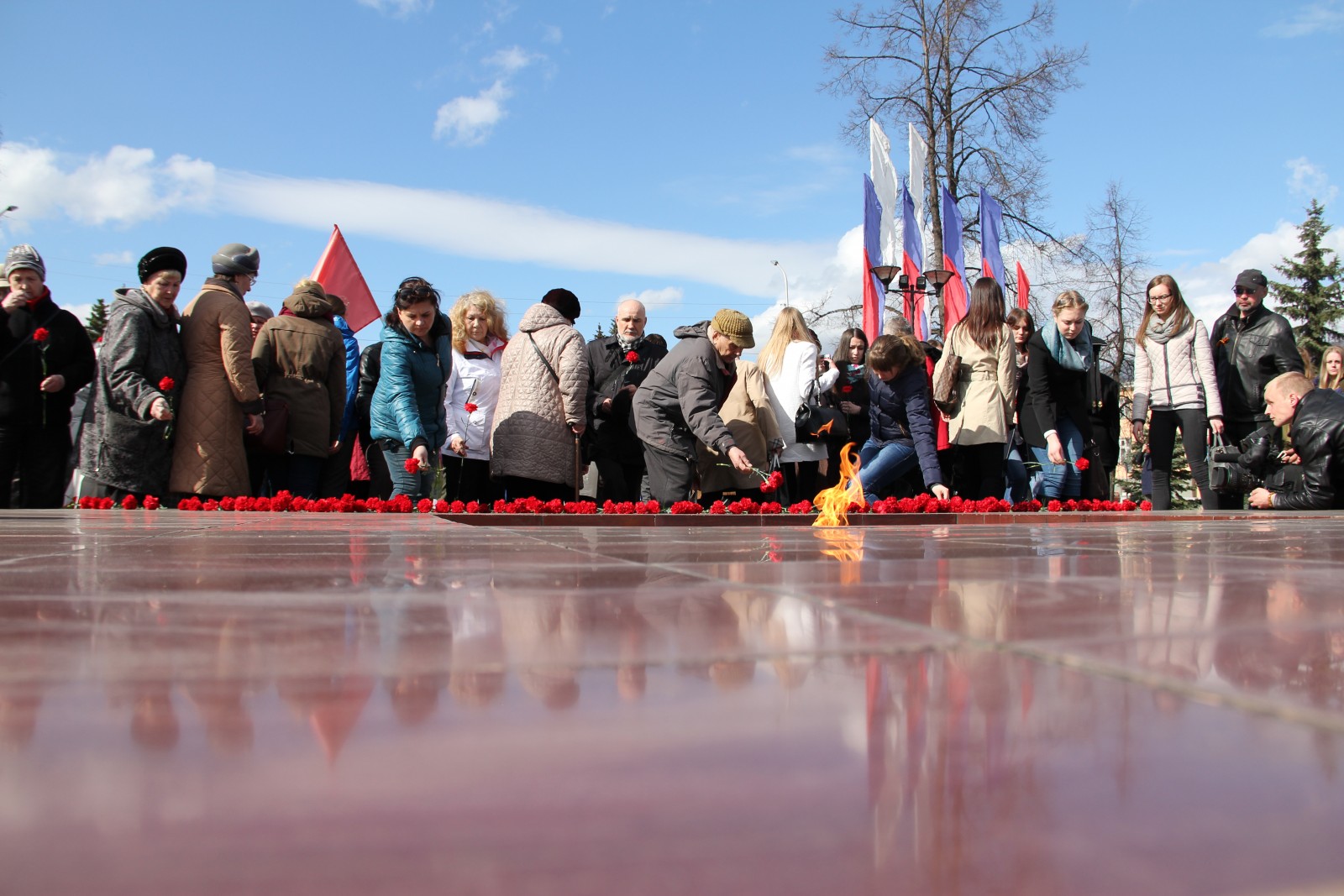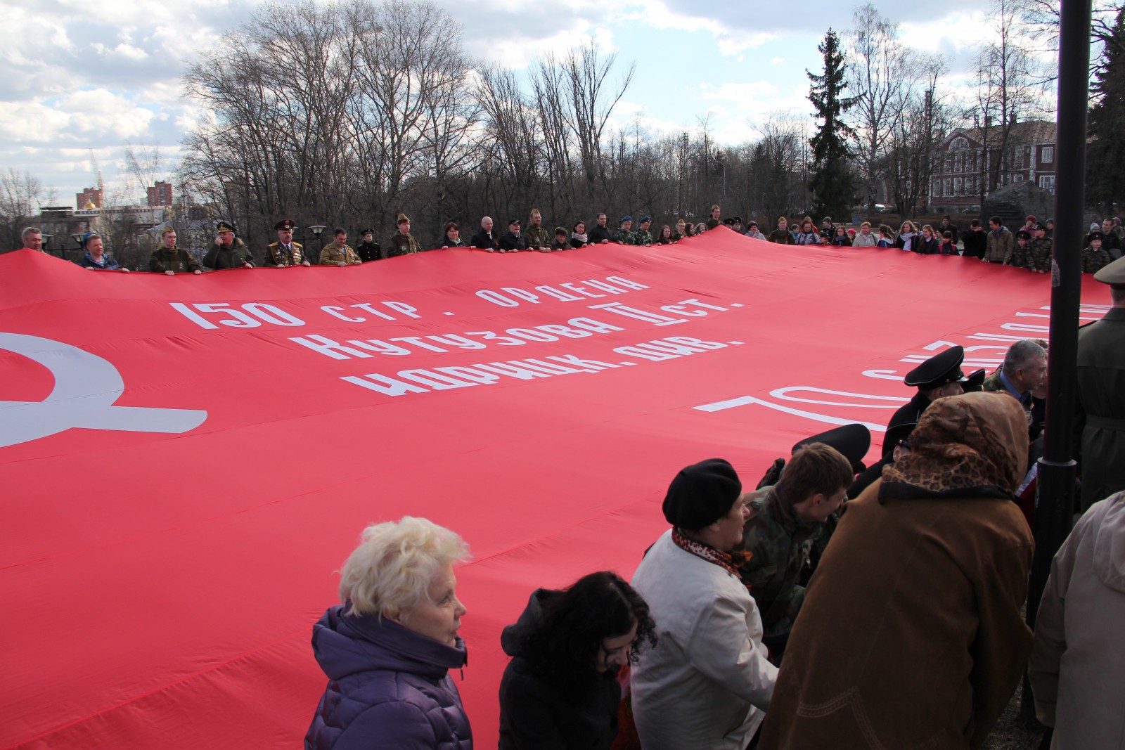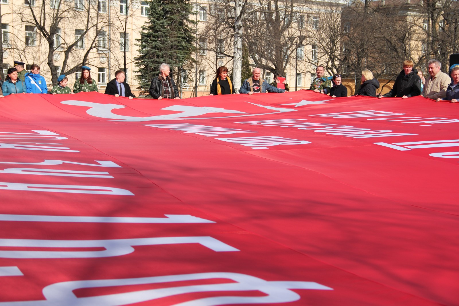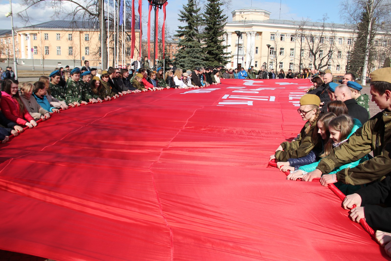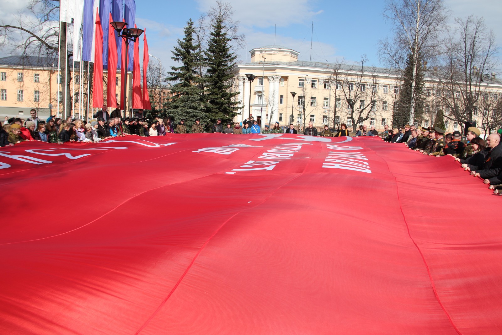 Огромное знамя Победы растянули у Вечного огня в Петрозаводске (видео)
