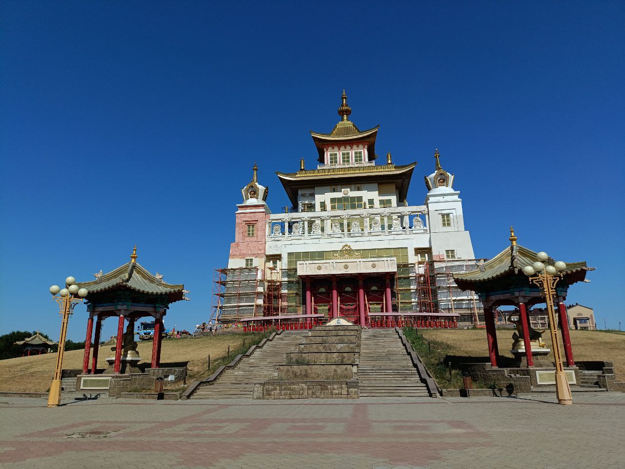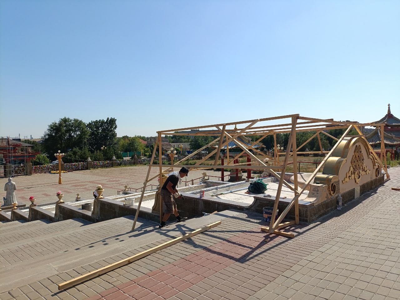 Завершение ремонтных работ, которые выполняют местные подрядные организации, планируется на середину сентября. К этому времени храм предстанет обновленным и готовым принять участников масштабного международного буддийского форума, а также вновь станет местом притяжения гостей и жителей региона.