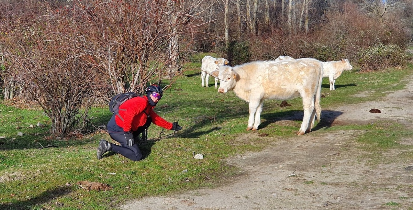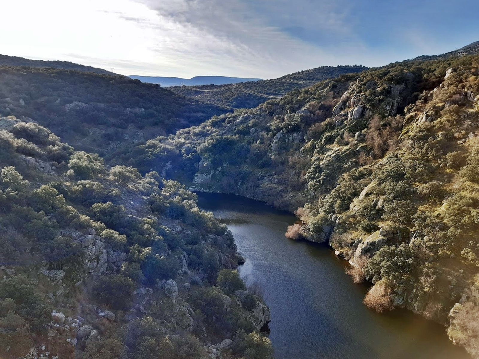 Nuestro recorrido se dirigió por la zona de las Rinconadas buscando Los Ángeles de San Rafael. Cruzamos el pantano por el viaducto y cruzamos la pantalla en busca de la zona de la cantera. Desde allí pasamos al lado de la ermita del Rosario por la zona de la cuesta de Valdecerrada por donde discurre el rio con su caudal desbordado.