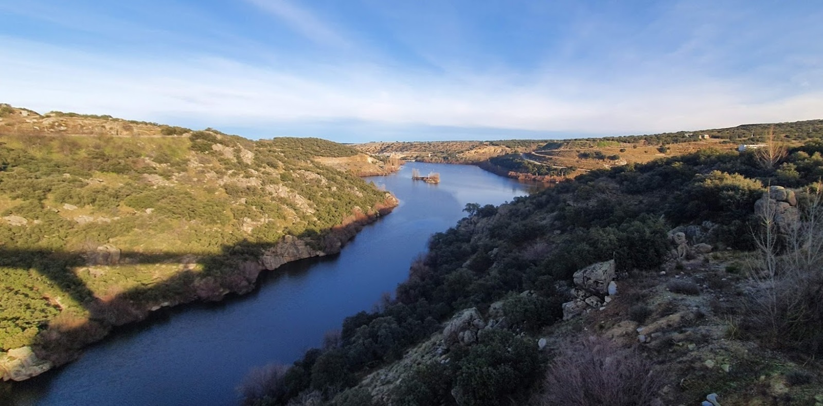 Ya teníamos en mente una ruta para visitar el precioso paraje natural de la Risca del rio Moros. Es una falla geológica que aprovechó el rio que domina nuestras tierras hace unos 400.000 años para abrirse paso en busca de su destino en el Eresma. Se trata de una garganta de piedra donde el rio pasa en una estrecha angostura haciéndose oír con fuerza. Las fotografías atestiguan la belleza del lugar.