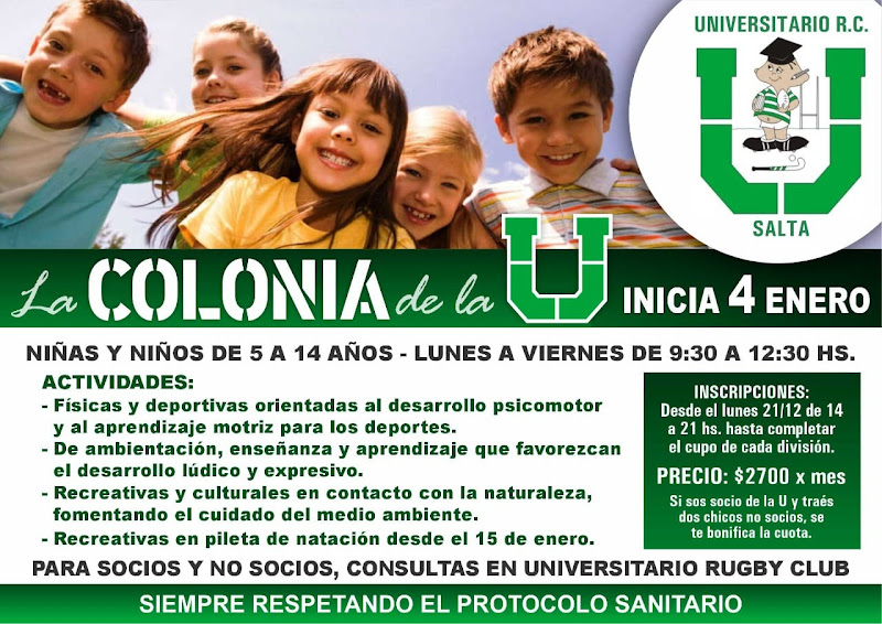 Un lujo para los salteños. El club Universitario RC lanzó su primera colonia de vacaciones, cuyas actividades se iniciarán el próximo 4 de enero y concluirán a fines de febrero.