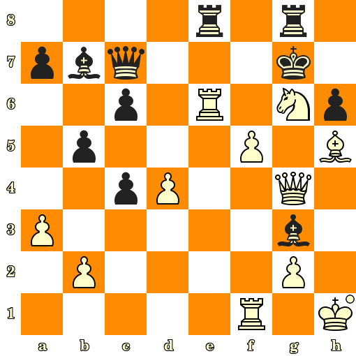 Échec et mat en 3 coups : 1. Cf8+ Rh8 2. Txh6+ Dh7 3. Txh7#