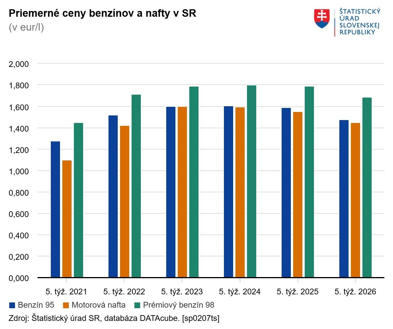Priemerné ceny benzínov a nafty. FOTO: ŠÚ SR