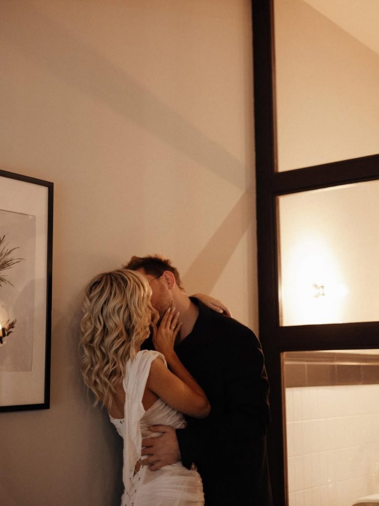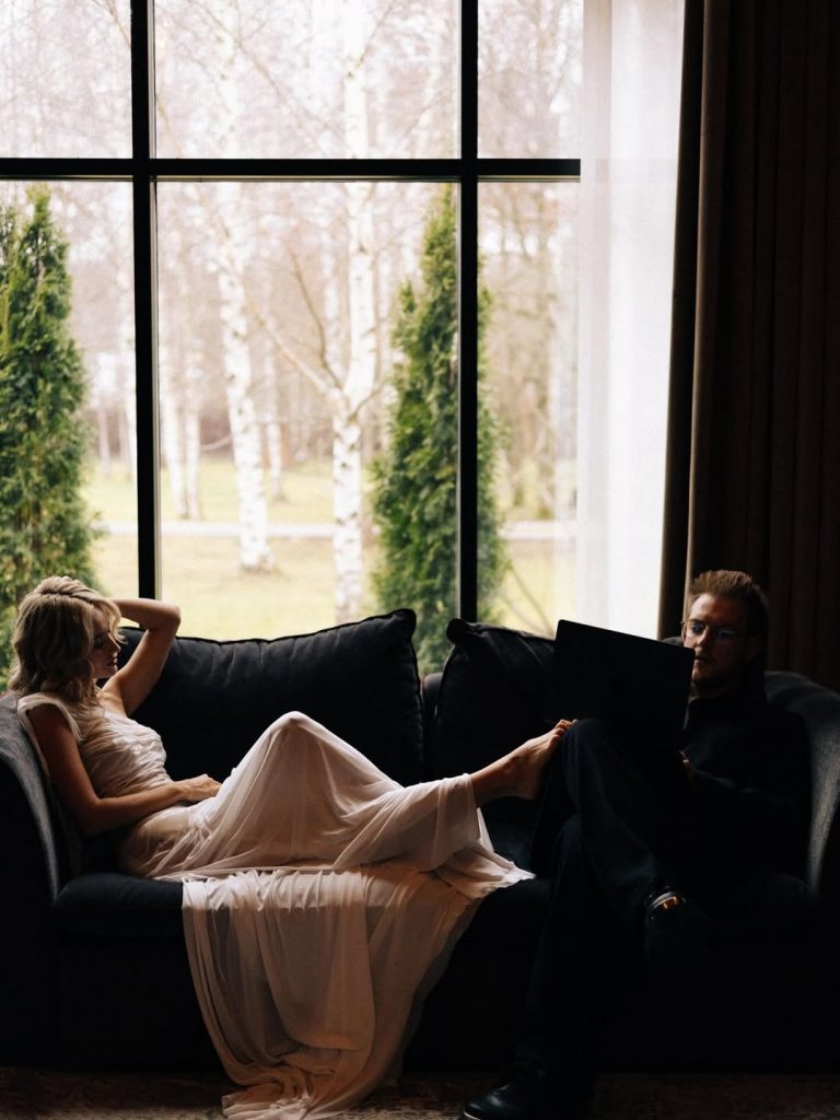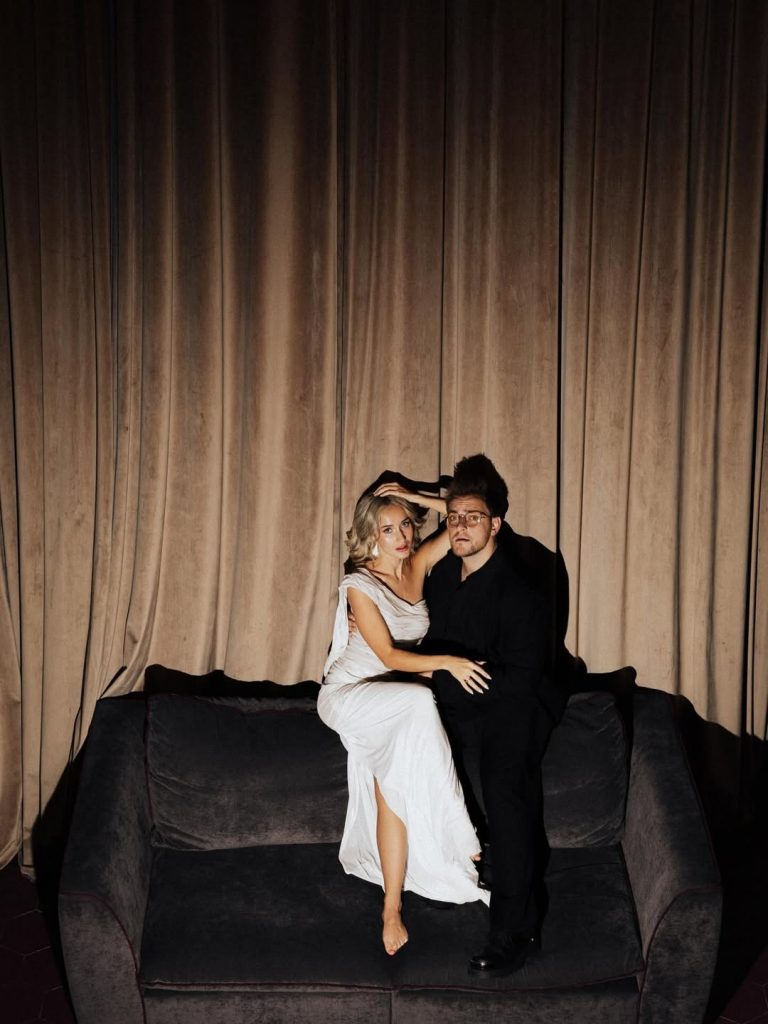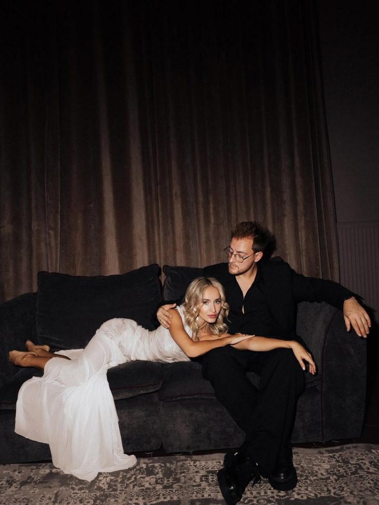 Вместо классической свадебной яркости здесь царит особая, чуть меланхоличная атмосфера. На снимках певица в изысканном белом платье, которое элегантно подчеркивает ее фигуру, а ее супруг, Олег Сидоров, в строгом черном костюме. Взгляд мужа, полный нежности, устремлен на Настю. Кадры заметно отличаются от привычных свадебных фотосессий, ведь вместо пышных декораций и светлых, ярких тонов на фото царит сдержанная, почти кинематографическая эстетика.