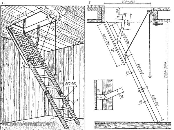 Складная лестница на чердак своими руками