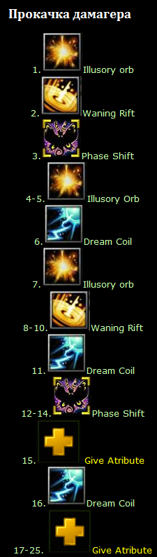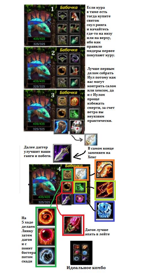 Теперь рассмотрим разновидности идеального комба, когда вам к примеру нужен дд-лейтер, или танк-саппорт, или анти-маг в конце концов, вы должны понять что у каждого героя есть масса комбинаций прокачки, и как и любой герой - Пак должен выступить на ту роль которая нужна вашей тиме, представьте если бы вы играли одними Паками - то понятно что эффективно будет распределить между Паками роли, дабы каждый герой выполнял нужную тиме функцию, кто-то маг-нюкер, кто сапп, танк, дамагер или анти-маг, естественно выбор зависит и от расклада противника, но главнее вам задать свою идеальную тактику за при которой ваша команда будет рулить, ибо хороший противник тоже не дурак и будет обустраивать роли команды как лучше команде играя против вас, ну и естественно побеждает то комбо которое сильнее себя покажет в игре... Ну ладно, пропустим длинный пролог, в будущем я это все детально распишу в своей программе гайд менеджер, там будет сборник всех моих гайдов, специально для игры по честным модам с нормальными правилами - к примеру без атаки в своих крипов/героев, ну правду играть с правилом без добивания своих - можно только с адекватными дотерами что усвоили знания о всем балансе дота, те которые как минимум играли на честных модах, для нас я и пишу эти гайды, так вот...