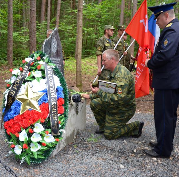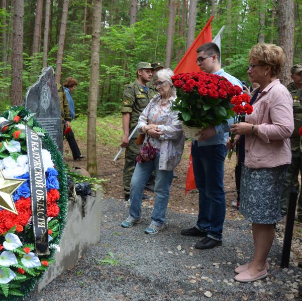 Накануне Дня Победы в Юхновском районе были перезахоронены останки освободителей и увековечены их имена на Поле Памяти (д. Долина), на мемориале в Юхнове, в д. Барсуки. И вот еще один успешный результат поисковой работы: в сосновом бору у реки Ресса открыт памятный знак павшим воинам отряда «Особые» (Отдельная мотострелковая бригада особого назначения НКВД СССР).