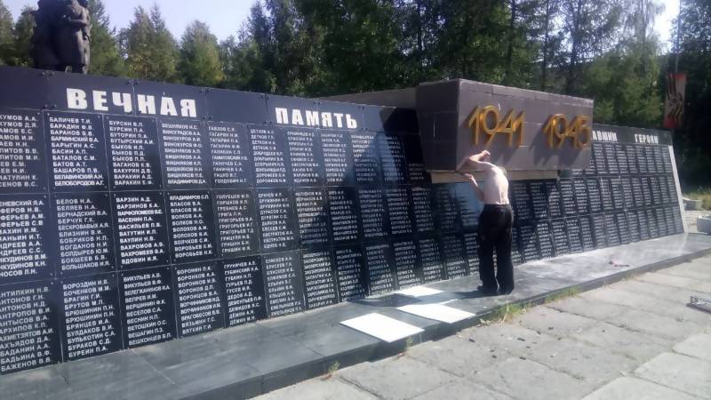 Подрядная организация в рамках муниципального контракта проводит работы по очистке элементов монумента и восстановлению надписей.