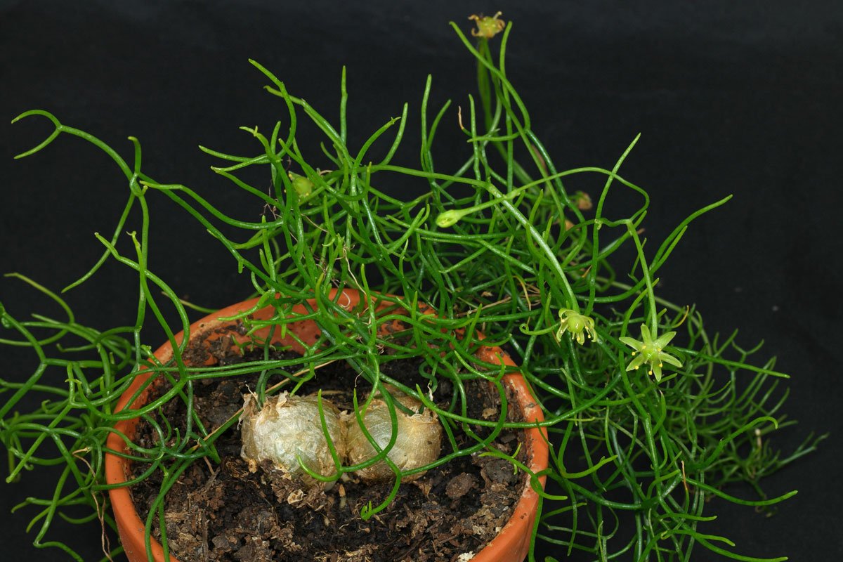 Мода на выращивание странных комнатных растений с необычными цветками или деформированными стеблями привлекла внимание к одному из самых экзотичных луковичных – бовиэе. Вьющийся огурец, или вьющаяся луковица – столь оригинальное растение, что распознать в нем обычную выгоночную культуру непросто даже после длительного знакомства. Ее утолщенная луковица сочетается с причудливой массой побегов, цветение рассыпает необычные звездочки по кроне, а характер при этом остается едва ли не таким же, как у гиацинтов или птицемлечников. Роскошная и эксклюзивная, бовиэя – главная сенсация в категории комнатных экзотов последних лет.