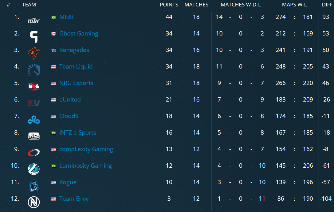 Матчи лиги будут проводиться по круговой системе: каждая команда должна будет сыграть с каждой две карты. За победу в основное время составам будет начисляться по три очка, за победу в овертайме – два, а за проигрыш в овертайме – одно. Шесть лучших команд из Северной Америки и семь лучших составов из Европы попадут на LAN-финал, который пройдет с 4 по 9 декабря.