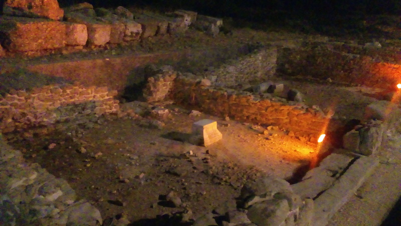 Выхожу на главную улицу. По вполне современной дороге-одноколейке туда-сюда снуют машины, долмуши и даже автобусы (вот тут пробки бывают, и достаточно протяженные). Кстати, от конечной остановки долмуш ходит бесплатный муниципальный автобус для всех желающих непосредственно к античному театру. Но я предпочел пройтись пешком. Для пешеходов по обе стороны дороги оборудован деревянный тротуар (он сделан из не наглухо закрепленных и подогнанных друг к другу деревянных брусков наподобие шпал). Развалины каждого дома центральной улицы подсвечены изнутри. Если бы не обилие туристов, можно было бы полностью раствориться в этом античном городе с его античным небом…