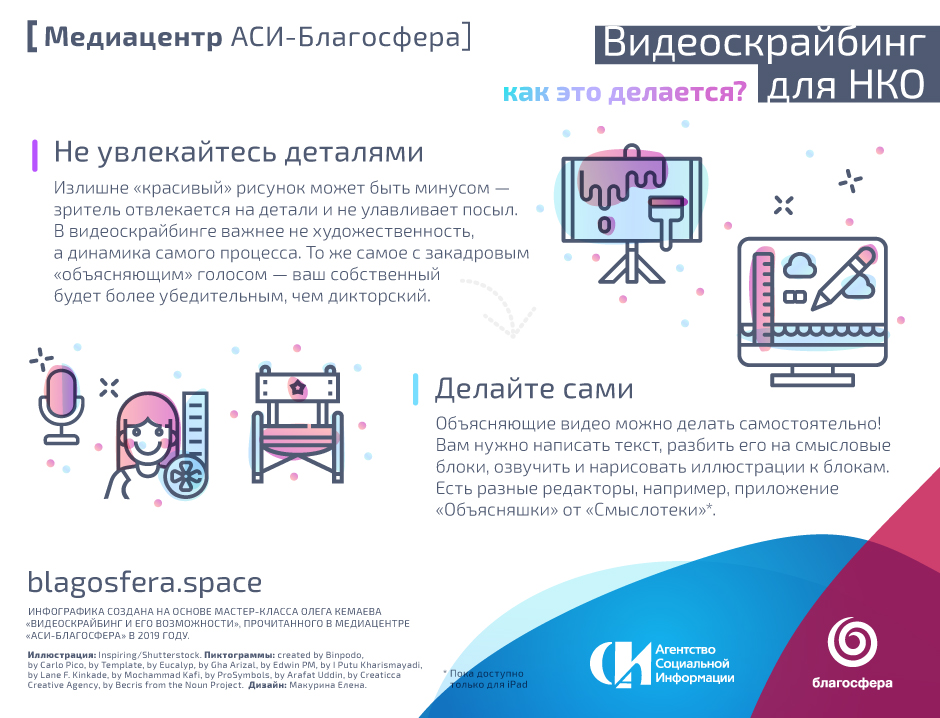 Инструкция создана по материалам мастер-класса «Видеоскрайбинг и его возможности», который прошел в медиаклубе «АСИ — Благосфера».