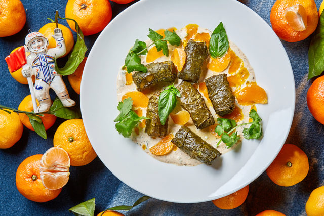 С 25 по 31 декабря бренд-шеф Джихан Дениз приготовит праздничное блюдо навынос — индейку «Долма» по национальному турецкому рецепту – целиком запеченная птица, фаршированная рисом с бараньей печенью, орехами и пряностями. Стоимость блюда от 8000 рублей. Предзаказ обязателен, самовывоз.