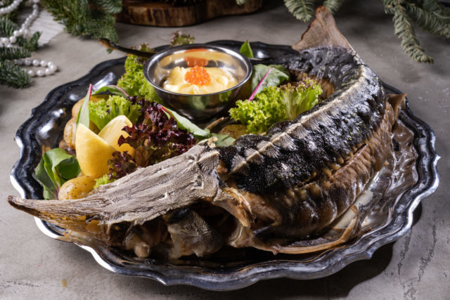 До 28 декабря ресторан принимает заказы навынос! Доступно практически все из меню: ассортимент икры, от черной и паюсной осетровой до щучьей и грибной, разнообразные салаты, закуски – холодец из трех видов мяса, тельное из карпа, грузди в сметане; сельди – балтийская, архангельская, иваси, каспийский залом; мясное и овощное ассорти и многое другое.