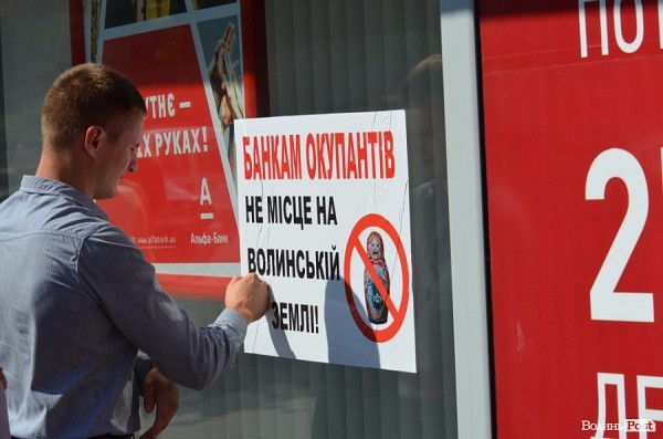 В Луцке активисты потребовали закрыть российские банки в двухнедельный срок