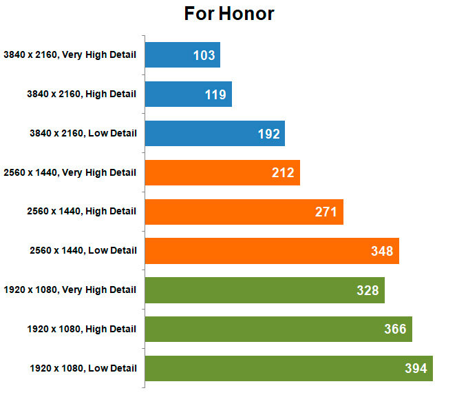 For Honor отлично «крутится» на всех разрешениях и настройках, даже в 4K на максимальной детализации более 100 кадров в секунду. Да и картинка плавная, без рывков. Фактически, это самая легкая игра в сегодняшнем наборе тестов, и одна из самых красочных.