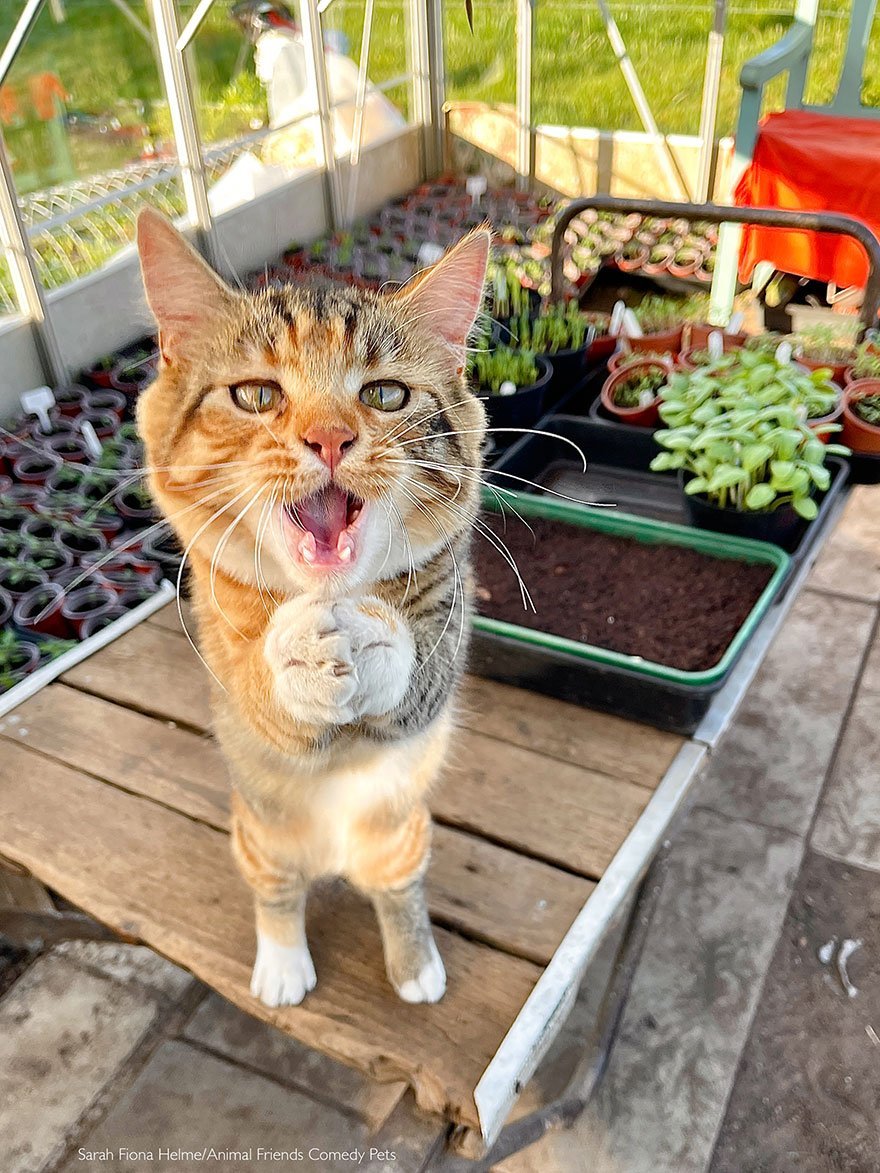 Фото: www.comedypetphoto.comРози помогала мне в теплице и решила попробовать самым привлекательным для нее способом (и с помощью тачки, на которую можно было встать) убедить меня дать ей несколько ее любимых лакомств - что я, будучи скромной кошачьей прислугой без силы воли, и сделала!Сара Фиона Хелм