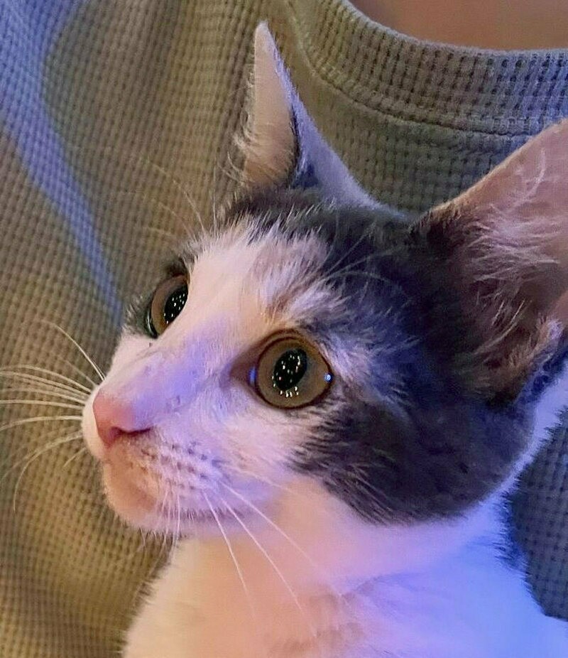 Кот из приюта впервые забрался к своему новому хозяину на колени