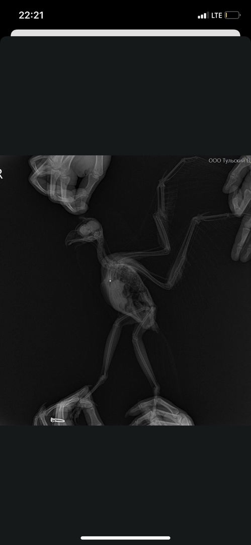 Сначала подумали, что птицу сбила машина. Но рентген показал дробь в верхней области груди.