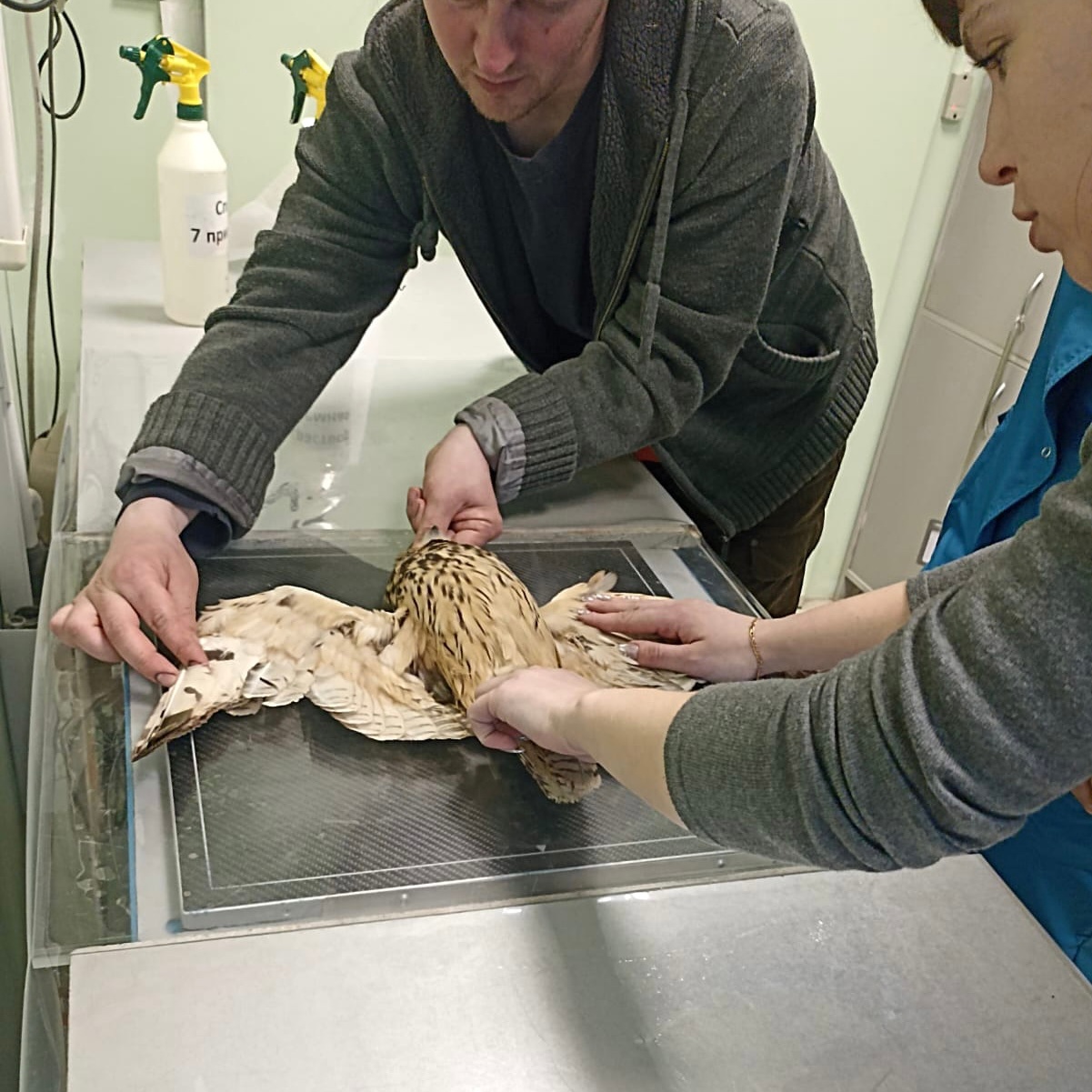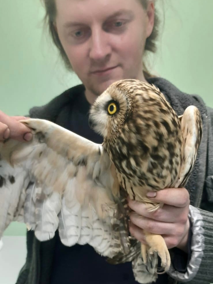 Болотную сову с перебитыми крыльями подобрали неравнодушные люди в окрестностях села Дорофеево возле трассы и оперативно связались с ребятами.