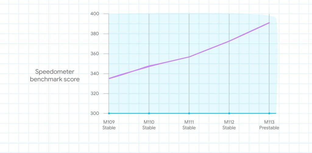 На Android браузер Chrome должен нормально работать на многих типах устройств с различными техническими характеристиками, но при этом Google оптимизировал его для незначительной нагрузки. Сейчас поисковый гигант повышает производительность, ориентируясь на устройства высокого класса, а текущая версия Chrome использует флаги компилятора, настроенные на скорость, а не на размер двоичного файла. Таким образом, Chrome на этих устройствах в тесте Speedometer 2.1 показывает прирост скорости 30%. Инструмент «Спидометр» разработан командой Apple WebKit, тем не менее он является предпочтительным тестом Google, показывающим наиболее реальные результаты, когда дело доходит до сравнения производительности JavaScript.