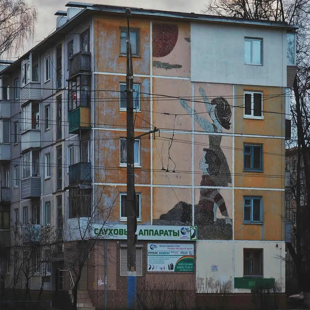 Замерзающие брянцы изуродовали советскую мозаику на старом доме в Брянске. Печально, что горожане сами не ценят то прекрасное, что их окружает.
