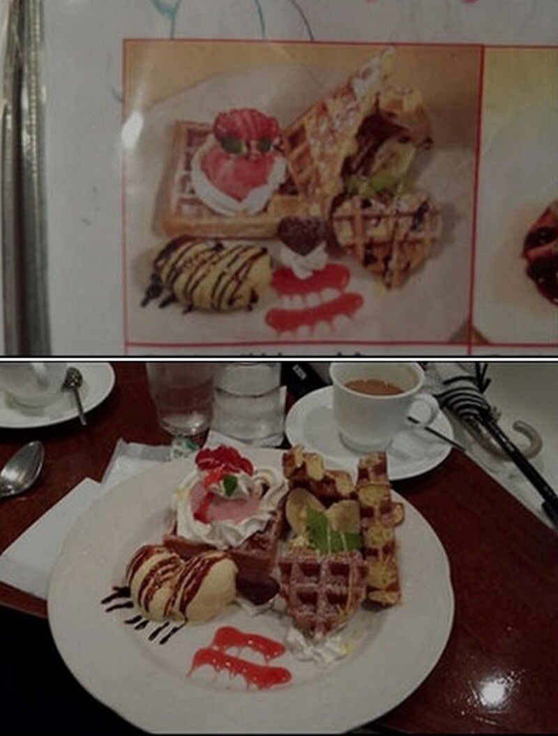 Даже еда разложена так же, как на фото в меню