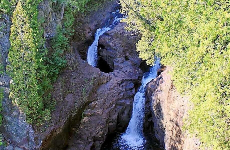 Есть в США в штате Миннесота на территории национального природного парка река Брюле, которая впадает в озеро Верхнее, входящее в систему Великих озер. На ней находится водопад. Самый обычный, и ничем не примечательный водный поток высотой 15 метров. Точнее будет сказать, что это высота только одной части водопада. А вот вторая его половина падает всего с трех метров и исчезает в загадочной дыре в камнях.