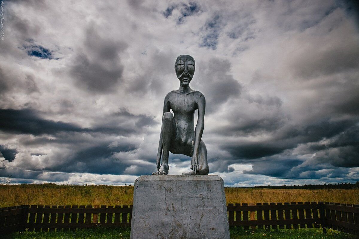 Памятник инопланетянину "Алешеньке"/ © permyachok.ruВот такой он, Молёбский треугольник — наша российская "Зона 51". Надо отдать должное местным властям — славу Молёбки они используют по полной для привлечения туристов. На трассе Пермь — Екатеринбург стоит указатель "Станция НЛО Молёбка", а на въезде в само село туристов встречает памятник инопланетянину "Алёшеньке". Существует карта зоны с отмеченными на ней аномальные местами. Проверить их все можно в относительном комфорте — в селе оборудованы стоянки для туристов, есть гостиницы и мотели.