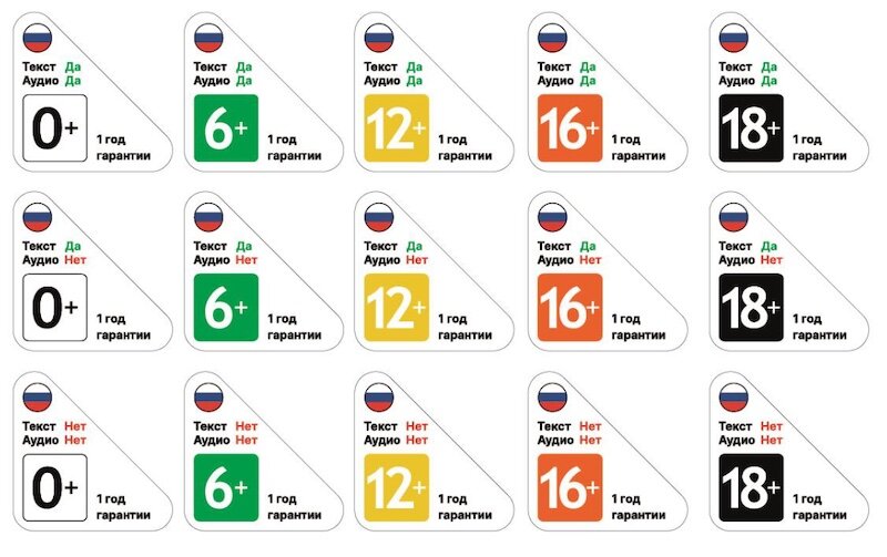 Представители «Р.А.Д.И. Видеоигр» уже разработали и единый дизайн стикеров, которыми будут маркировать физические издания видеоигр для информирования потенциального покупателя. На текущий момент заявлено о пяти возрастных категориях — 0+, 6+, 12+, 16+ и 18+.