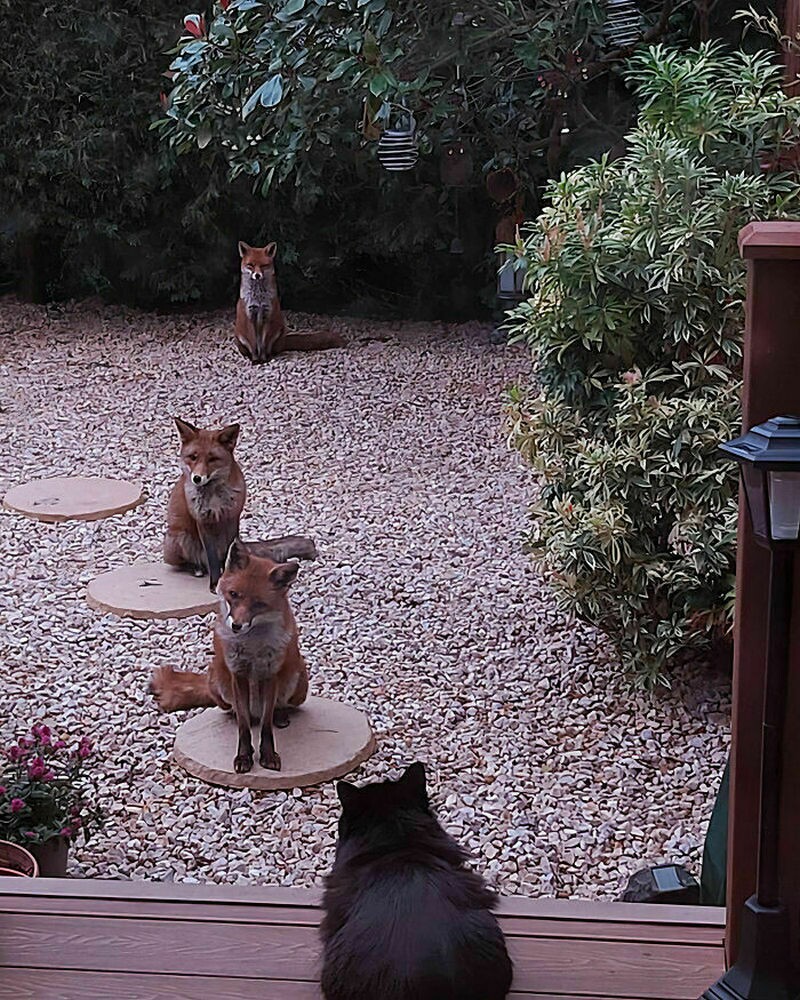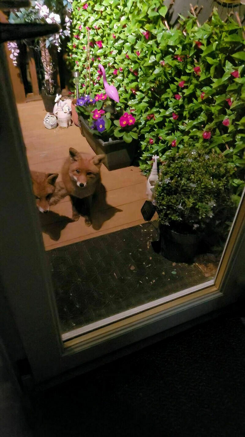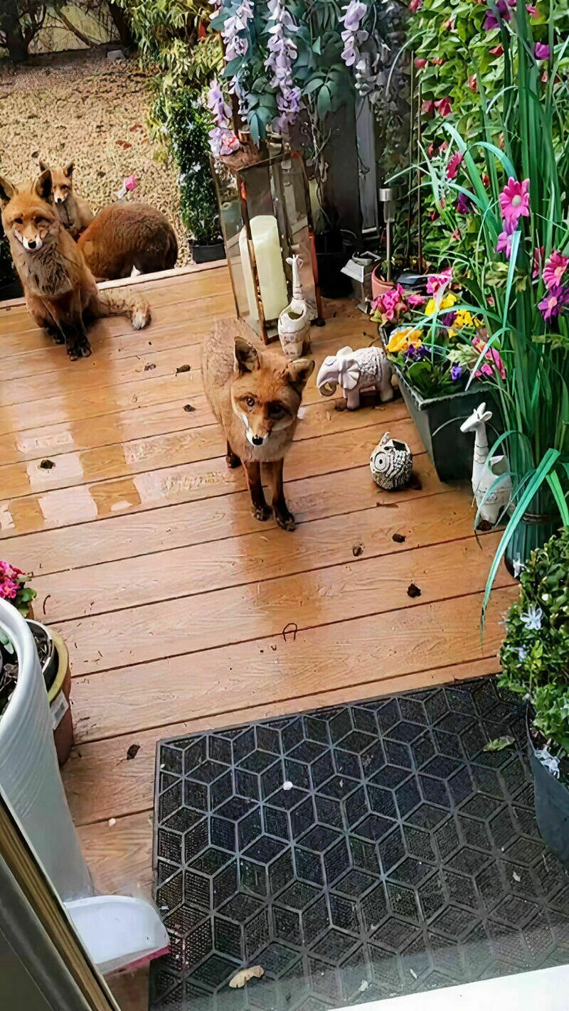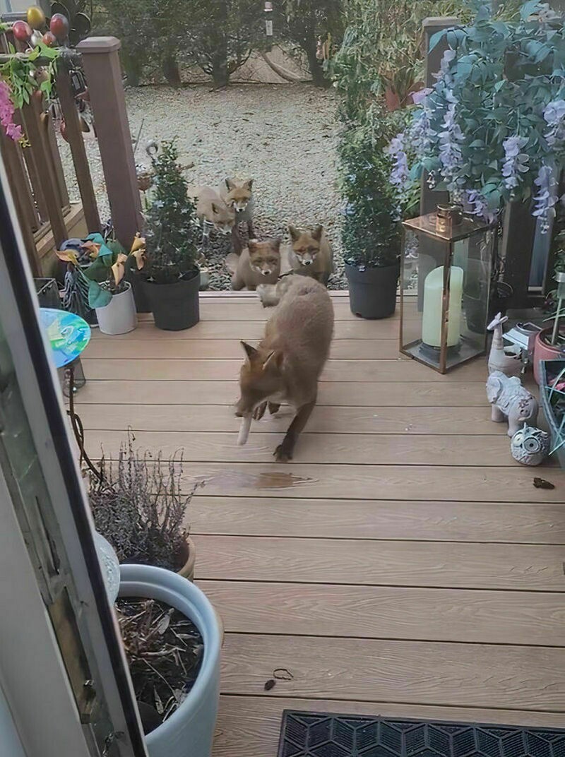 Лисы такие же любители вкусной еды и игр, как и наши собаки. Мы рассказывали вам о фотографе, пес которого подружился с лисой. У Шэрон Хьюз (Sharon Hughes) из Шотландии целых восемь рыжих приятелей, и они регулярно заглядывают к ней в гости. Шэрон всегда готовит их любимое угощение — рулетики с колбасой. Эта дружба продолжается уже 25 лет.