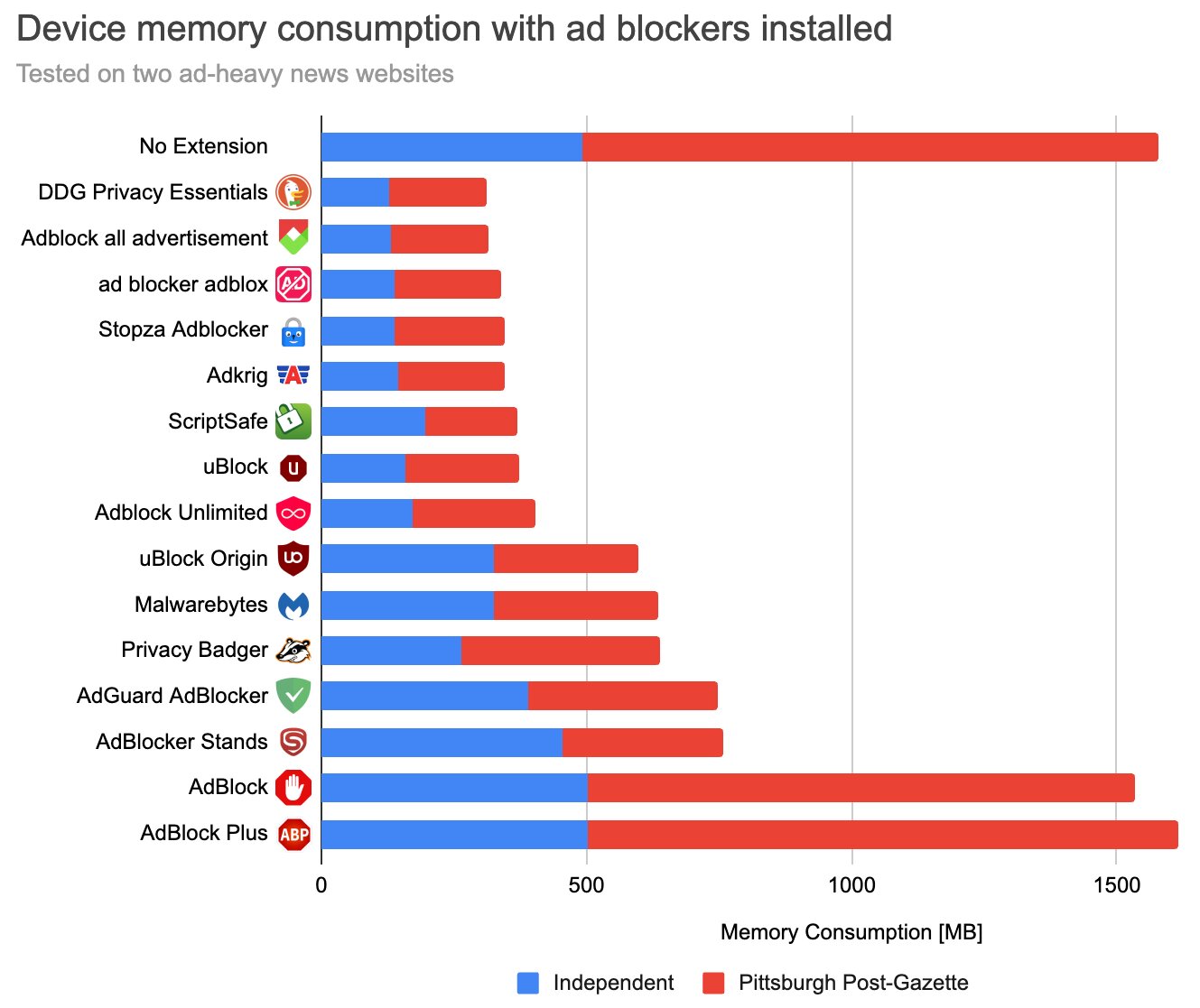 Исследование показало, что большинство блокировщиков ощутимо снижают расход памяти.