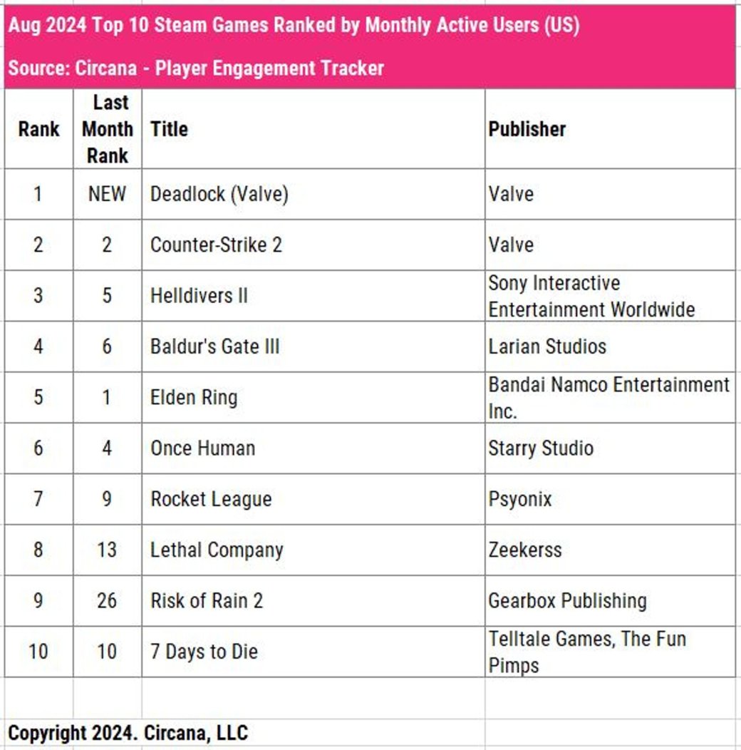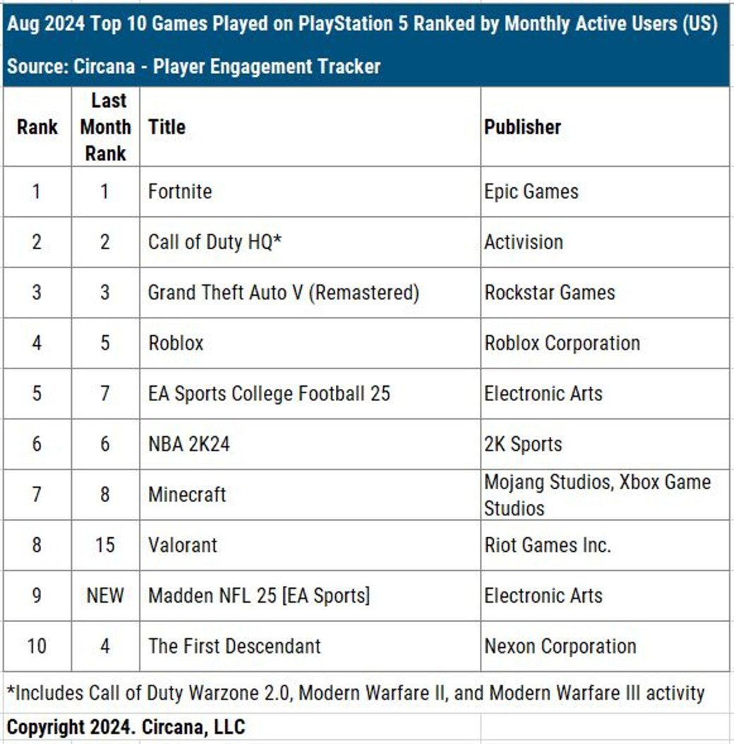 Самая успешная игра августа, Madden NFL 25, в чарте 2024 года дебютировала только на 12 месте. Другим релизам августа в топ-20 игр года места не нашлось.