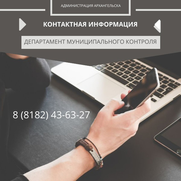 Департамент муниципального жилищного контроля находится по адресам: пр. Троицкий, 61 (благоустройство) и ул. Воскресенская, 7 (жилищный и земельный контроль). Контактный телефон – 8 (8182) 43-63-27. Директор департамента – Потолов Алексей Леонидович. Штатная численность – 31 сотрудник.