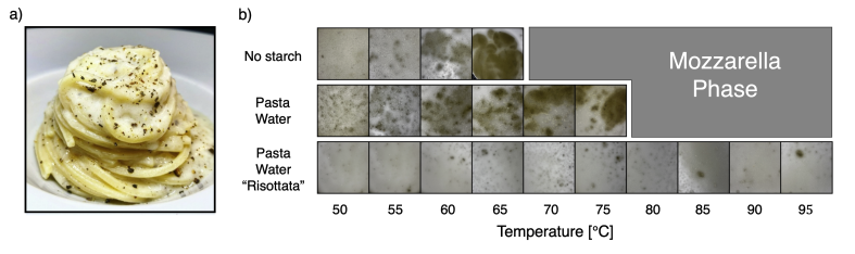 Физики подошли к проблеме со всей серьезностью, присущей научному методу. Они решили изучить процесс приготовления cacio e pepe, как если бы это было сложным химическим экспериментом. Взяв за основу постоянное количество пасты и воды, они варьировали количество сыра и следили за результатами, фиксируя происходящие изменения на фотографиях. Таким образом, ученые построили своеобразную «фазовую диаграмму» — карту, показывающую, как меняется структура соуса в зависимости от пропорций ингредиентов.