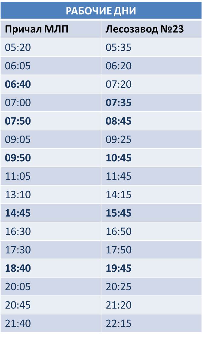 С 28 декабря на линию 22 лесозавод – 23 лесозавод выйдет два буксира, а перевозки на рейсах МЛП-14 лесозавод будут закрыты. Такая мера необходима для подготовки к монтажу понтона, чтобы сформировался устойчивый лед и отсутствовала открытая вода.