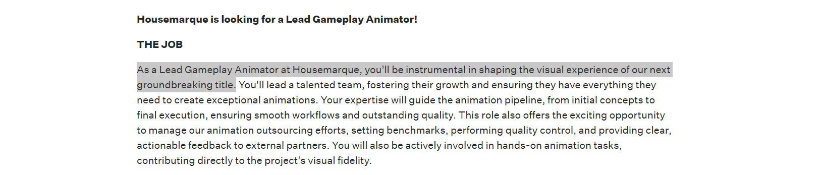 Housemarque известна по экшен-рогаликам Returnal и Saros — последний только готовится к релизу. О её следующей игре пока нет информации, но в описании вакансии ведущего геймплейного аниматора говорится о разработке чего-то «новаторского». У кандидата также должен быть опыт работы с AAA-татйлами.