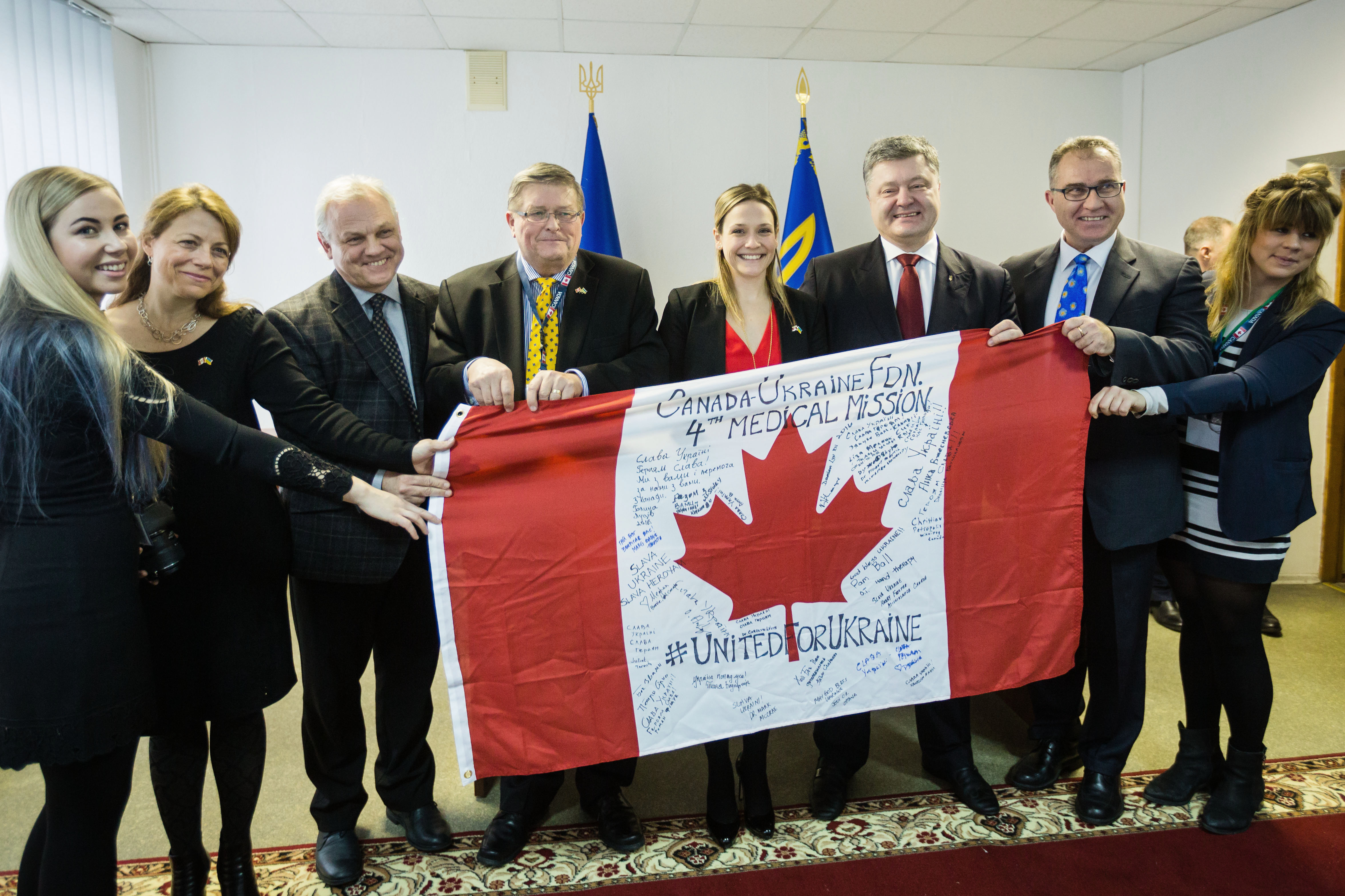 Президент Петр Порошенко вручил награды трем врачам, гражданам Канады, которые помогают раненым военным-участникам АТО в Главном военном клиническом госпитале в рамках совместной канадско-украинской акции.