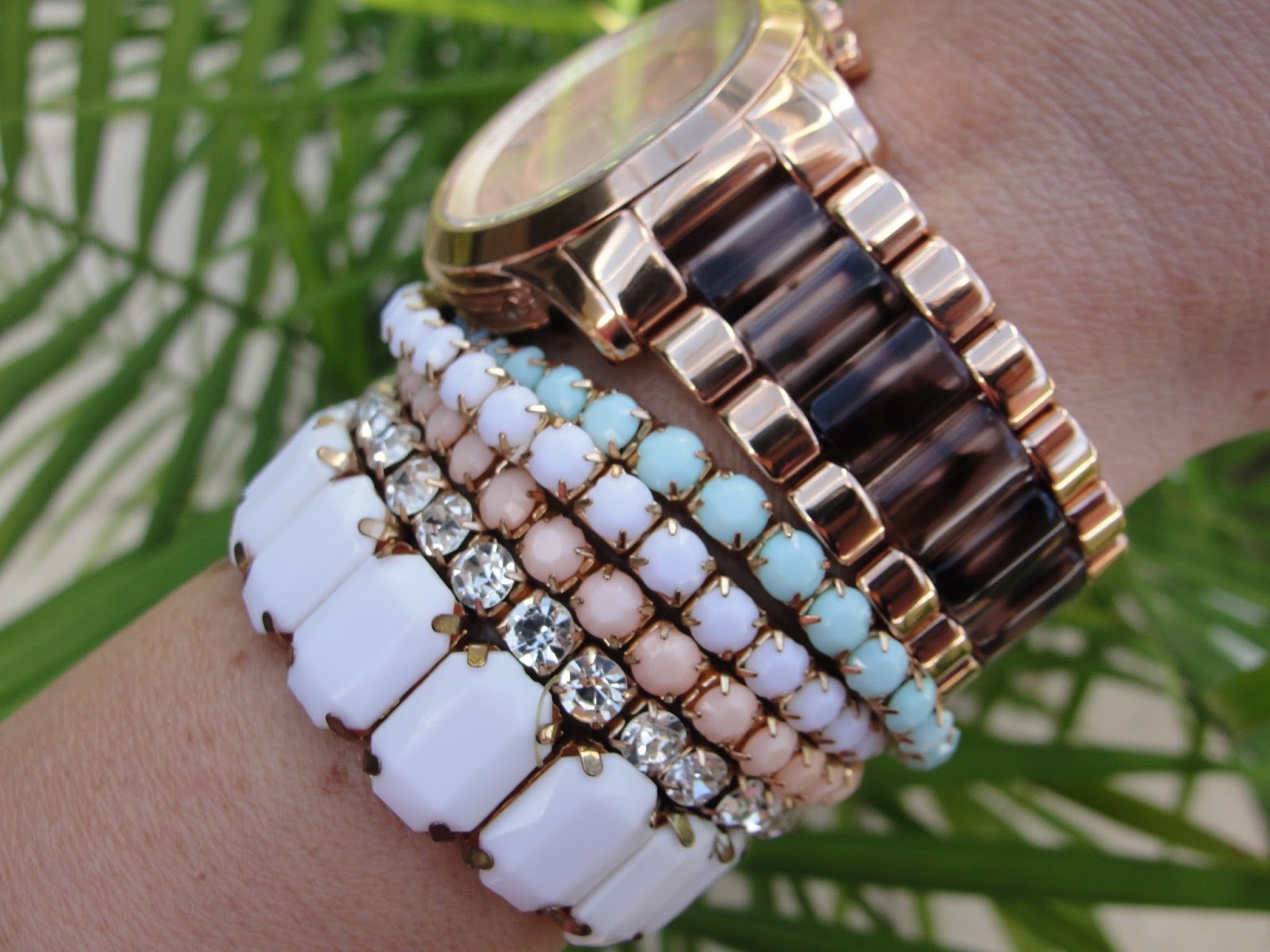 My husband got me this stunning Michael Kors (MK 6155) watch on Valentine´s Day! Isn´t it simply gorgeous? I love it so much! I find you can create a completely different look simply by adding different bracelets. This watch also feels very light weight on my arm and I love the tortoise details on the bracelet. I am still completely into rose gold!