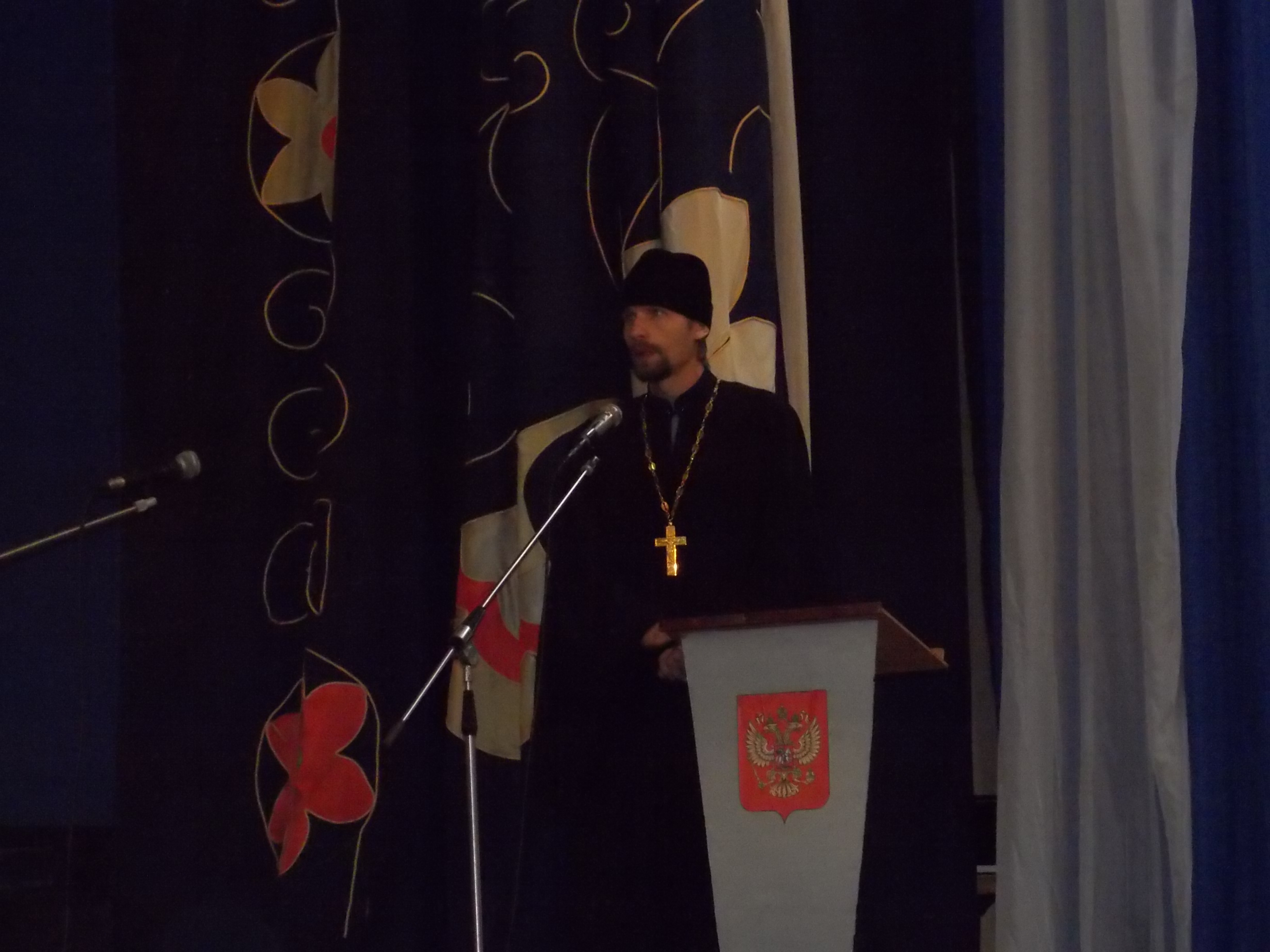 С напутственным словом ко всем присутствующим обратился настоятель храма Святых равноапостольных Кирилла и Мефодия отец Владимир, который поздравил всех с началом нового учебного года, пожелав педагогам терпения, талантливых учеников в новом учебном году, здоровья и дальнейших успехов. «Пусть Господь даст вам силы, направит ваш талант, ваши духовные усилия на созидание доброй, развитой и успешной личности ребенка. Да пребудет на вас благодать Божия!», - сказал иерей Владимир Баринов.