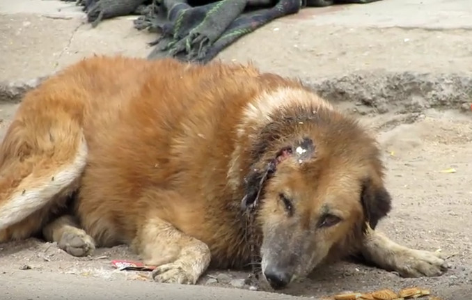Без помощи добрых людей эта собака скоро бы отправилась на тот свет...