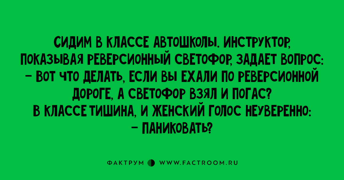К заправке со страшным грохотом подлетает учебная машина. За рулем женщина, подбегает к кассе и говорит: