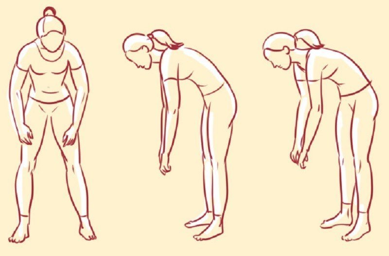 Выполняй упражнение в положении стоя, выпрямившись и расставив ноги на ширину плеч. Наклонись вперед и задержи дыхание. Во время задержки дыхания считай до 8 раз вслух. Продолжай считать до тех пор, пока хватит сил. Затем вернись в исходное положение.