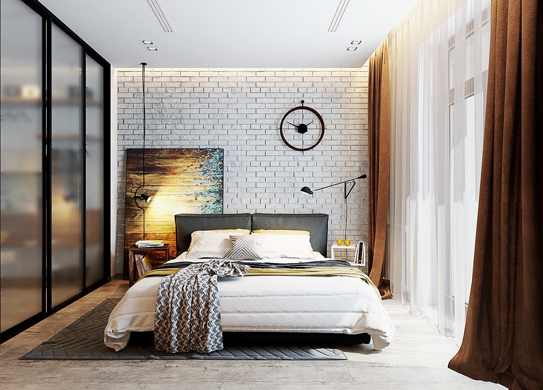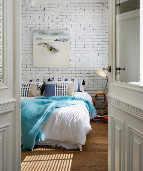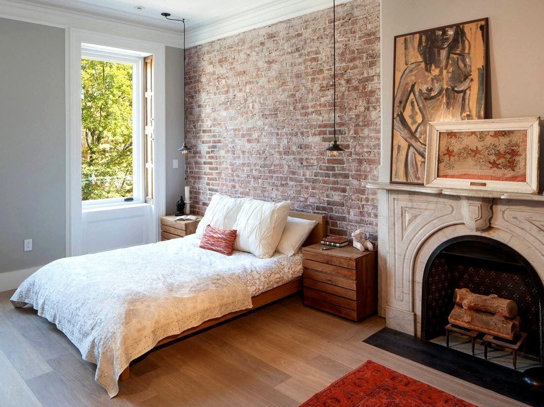 Кирпичная стена в спальне