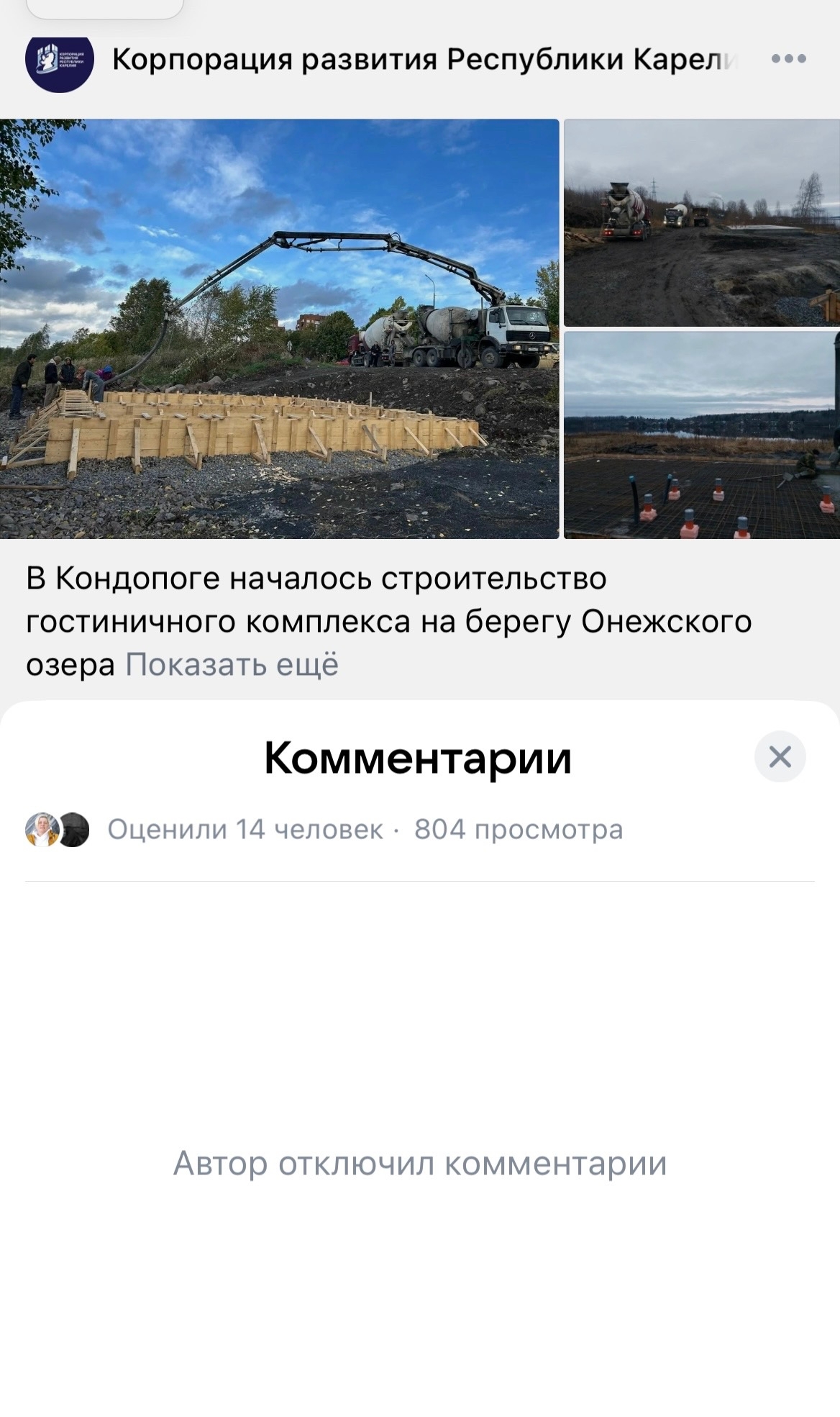 Слабунова также обратила внимание, что комментарии под постом на странице Корпорации развития Карелии закрыты, а на их сайте не найти информации об инвестиционном проекте, получившем землю без торгов.