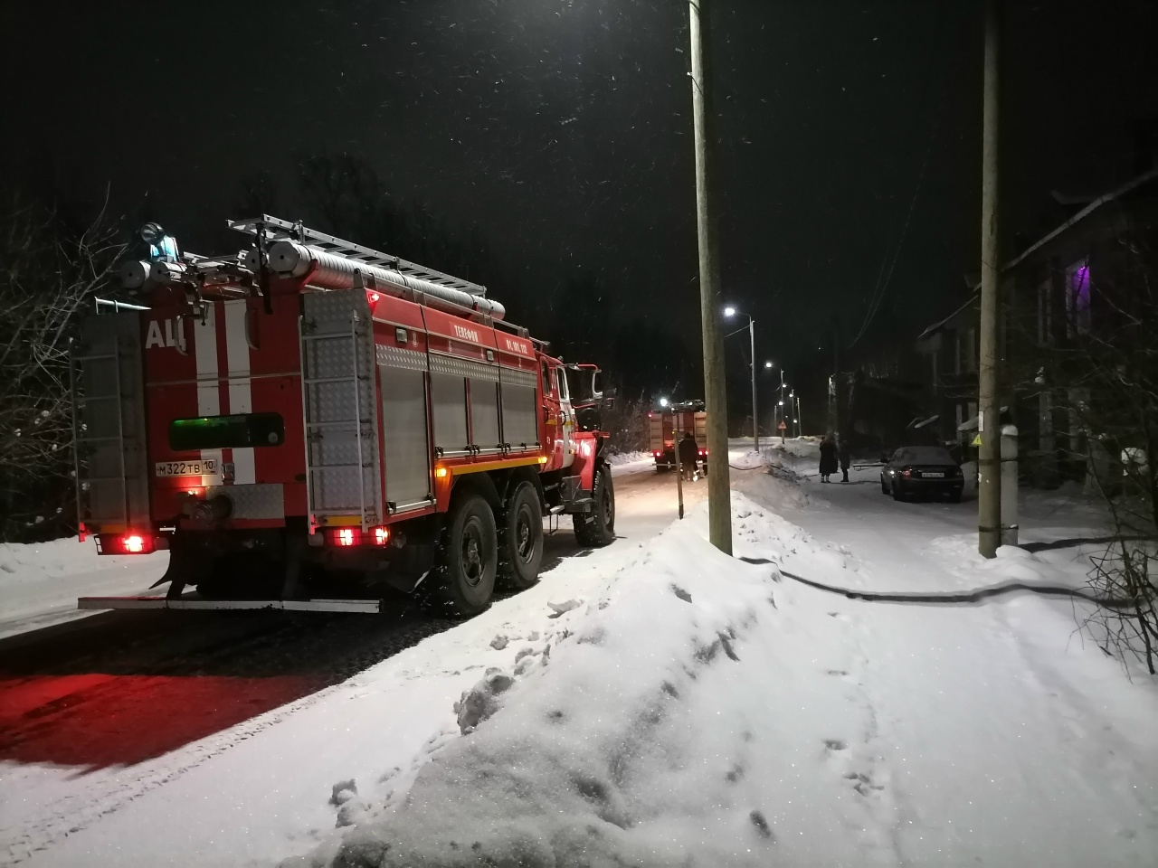 Вспыхнул двухэтажный деревянный дом в Олонце  на улице Пролетарская. На место выехали восемь спасателей.