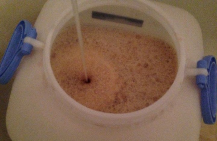 Вода, конечно же с фильтра, так как пиво не любит ни каких лишних бактерий, кроме своих. Последним ингредиентом добавляю заведенные заранее дрожжи.