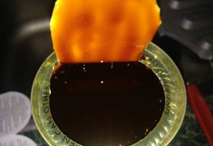 Перед вскрытием банку с концентратом хорошенько разогреваю под краном, что бы сироп стал более жидким и ничего не осталось на стенках банки.